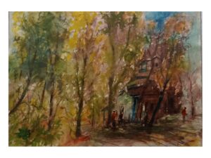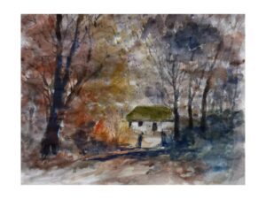 Imagen Tres: Esta panorámica es clásica en el medio rural; aquí el Maestro Milton Ramírez, con gran sensibilidad y arte, nos muestra el peculiar detalle de la vegetación con sus luces naturales, amalgamados con los claroscuros del follaje. Aquí también el ser humano tiene presencia de manera cotidiana en su entorno de vida. No es fácil esta destreza artística del Maestro Milton Ramírez, porque esto se logra con talento natural, experiencia, sabiduría y lo que ya trae de nacimiento. Estas acuarelas son genuinas creaciones de un singular genio tabasqueño. Servidos, amigos y conocedores del talento del Maestro Milton Ramírez… ¡sí puej!