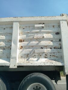 Imagen Dos: Desde que la pasada administración del tepetiteco, previo acuerdo, eliminó la vigilancia de las carreteras porque los de la desaparecida Policía Federal de Caminos tenían cierto control y no permitían que ningún camión de volteo que transporta material peligroso (como arena, grava o escombros) circulara de esa forma tirando sobre la carpeta asfáltica desperdicios que provocan fuertes y fatales accidentes. Muchos accidentes son porque las piedras rompen el parabrisas y se pierde el control de los vehículos. Que ciertamente esa policía fue muy cuestionada, pero ya no hay vigilancia que frene estas irregularidades… hoy a la división de la Guardia Nacional se les conoce como «levantamuertos»… no tienen otra acción más hacia el pueblo. Servidos, amigos conductores con parabrisas dañados… ¡no, puej!
